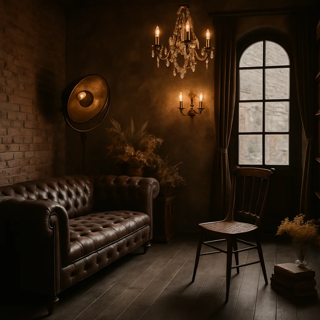 特定のテーマやコンセプトに特化した撮影スタジオも人気です。Studio La vie en Rose(ラヴィアンローズ)は、ゴージャスな内装が特徴で、天井いっぱいに吊るされたゴールドのシャンデリアと赤い壁が印象的です。このスタジオは、アーティスト写真やMV撮影など、個性的な撮影に最適です。 (参考: rental-space.design)