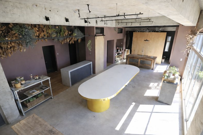 2023年のリニューアルで、壁は落ち着いたピンクベージュに整えられ、中央にはイエローの大きなテーブルを設置。アトリエらしい温度感がありつつ、色のアクセントが効くので、物撮りから人物まで“世界観”をつくりやすいのが特長です。世田谷エリアで、雰囲気そのものが画になるハウススタジオを探している制作チームにも相性が良いです。